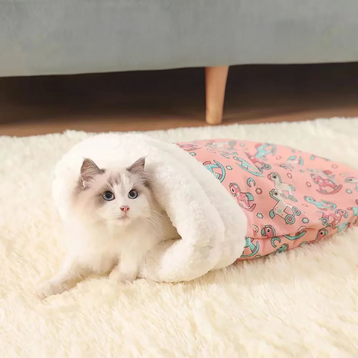 This plush sleeping bag is made with a thick, fluffy lining that helps lock in body heat — perfect for cats who love to burrow. The wide opening makes it easy for your cat to climb in and out, while the cozy pocket design gives them a sense of security.
